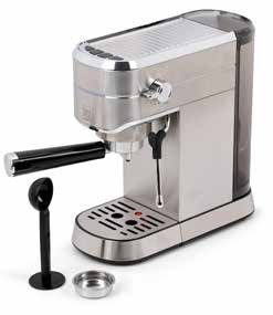 Kućište visoke kvalitete od nehrđajućeg čelika, pritisak 15 bara, 2 u 1 sito, uložak za 1 šalicu i 2 šalice, BRZI START: vrijeme zagrijavanja manje od 60 sekundi, 1L odvojiva posuda za vodu s poklopcem, uklonjiva donja posuda (za veće šalice), mlaznica za pripremu vrućeg mlijeka, kremaste mliječne pjene ili vruće vode za čaj, osvijetljena kontrolna ploča. Jednostavno čišćenje.