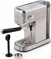 Kućište od nehrđajućeg čelika, pritisak 15 bara, 2 u 1 sito, BRZI START: vrijeme zagrijavanja manje od 60 sekundi, 1L odvojiva posuda za vodu s poklopcem, mlaznica za pripremu vrućeg mlijeka, kremaste mliječne pjene ili vruće vode za čaj.