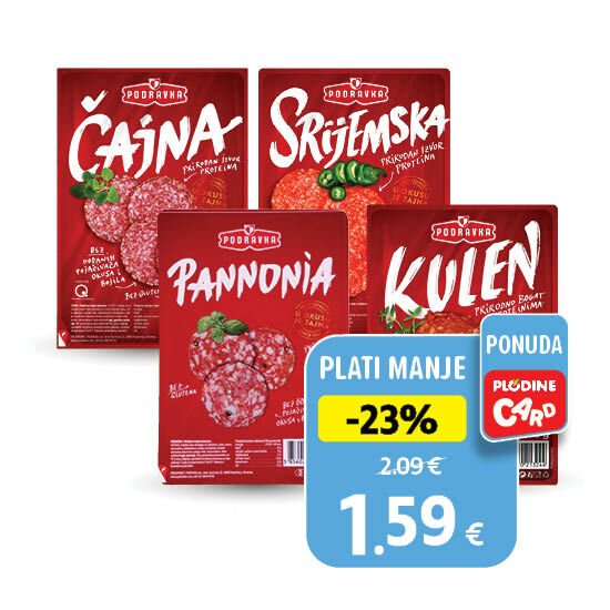 Čajna, Kulen,Z imska, Srijemska ili Pannonia, trajni narezak Podravka 80 g u Plodine trgovinama