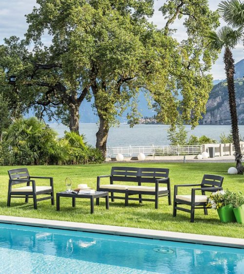 set dvosjeda, dvije stolice i stola izrađen je od čvrstih materijala otpornih na vremenske uvjete, a mekanijastuci od poliestera osiguravaju maksimalnu udobnost 1 set