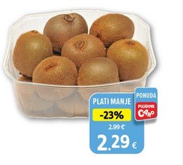 Kiwi 1 kg može se kupiti u odabranim Plodine poslovnicama za 2,29 €. Ponuda vrijedi još 3 dana.