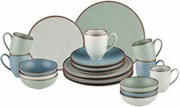 porculan, boja: plava/zelena/bež, sastoji se od 6 plitkih i 6 desertnih tanjura, 6 velikih šalica i 6 zdjelica, pogodno za perilicu posuđa i mikrovalnu pećnicu