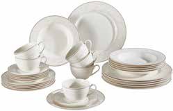 za 6 osoba, Fine China porculan, boja: bijela s bež dekorom, pogodno za perilicu posuđa i mikrovalnu pećnicu.
