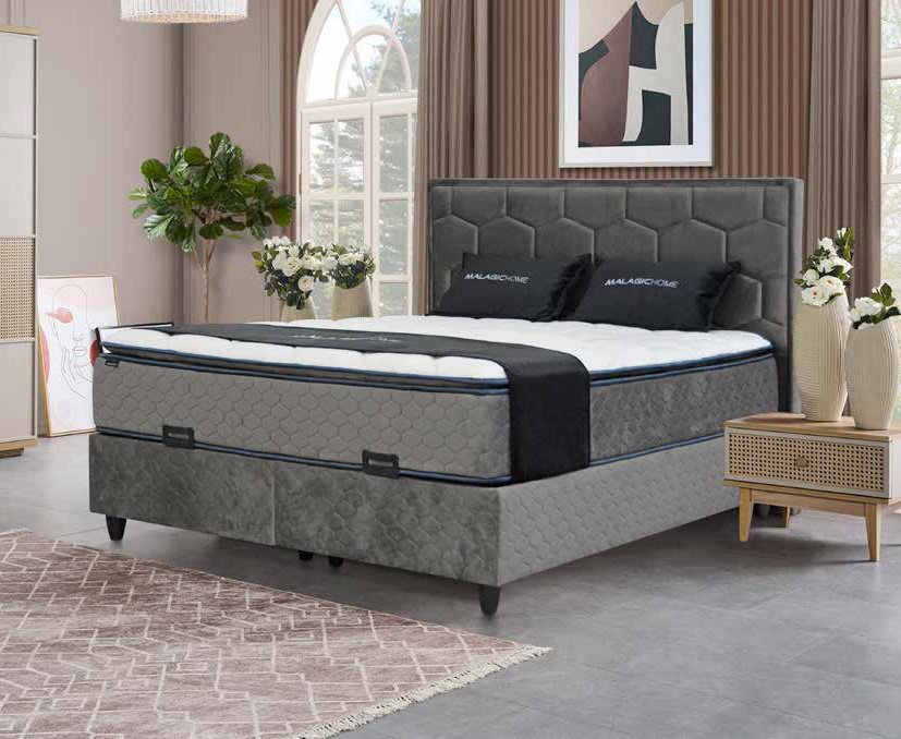 tapeciran, boja: siva, pliš, madrac s džepićastom opružnom jezgrom visine 28 cm, integrirani nadmadrac v. 4 cm, dim.: 160x200 cm, vanjske dim.: 170x123x210 cm, visina ležaja 63 cm, sanduk za posteljinu uključen u cijenu (14640026/01)