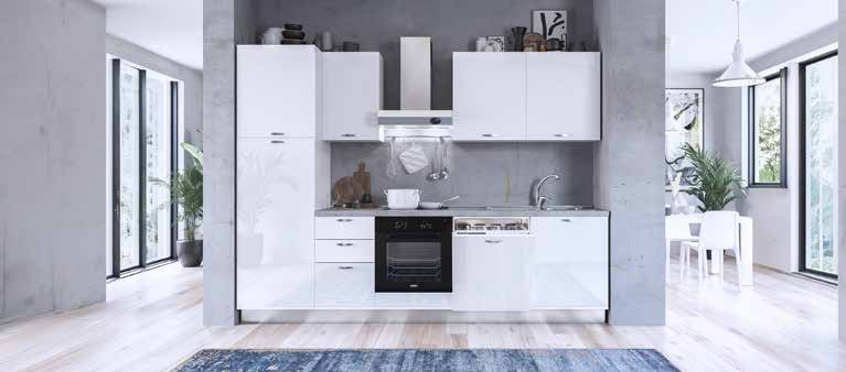 boja: bijela visoki sjaj, radna ploča dekor betona, dim.: 285 cm. U cijenu su uključeni aparati Beko: staklokeramička ploča za kuhanje HIC64401, pećnica BBIC11000B/A, hladnjak s ledenicom BDSA250K4SN/E, napa Elica Tilly 60/C i sudoper N-278. (04020016/01)