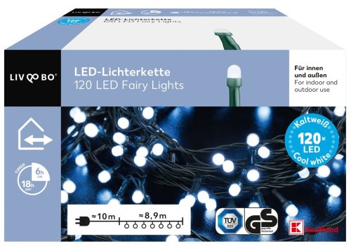 - 120 LED dioda bijele ili šarene - s funkcijom timera - za unutarnju i vanjsku upotrebu ukupna duljina kabela cca. 18,9 m