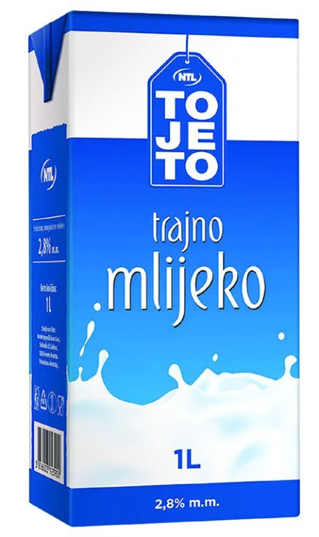 Mlijeko trajno 2,8% m.m. ToJeTo, 1 l u NTL trgovinama