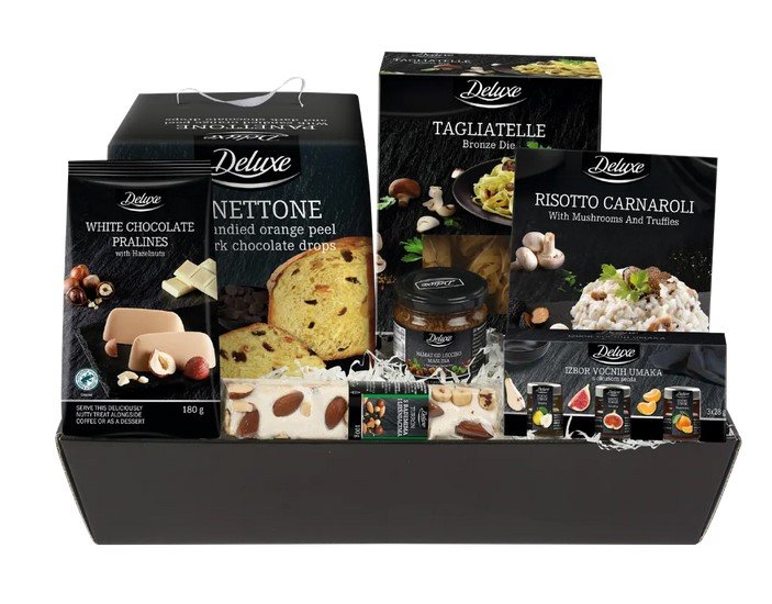 Panettone, čokoladne praline, tagliatelle, risotto carnaroli, namaz od Leccino maslina, turrón s bademima i lješnjacima i izbor voćnih umaka s okusom senfa