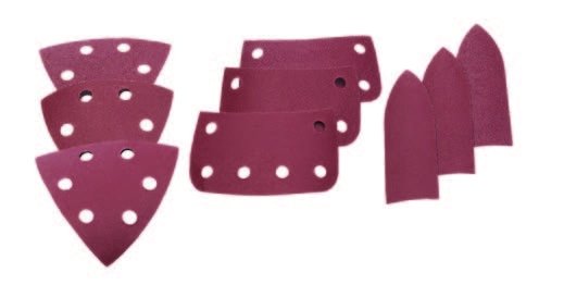 Uključujući: 9x brusnih listova (granulacije 80/120/180), 1x brusni jezik i 1x adapter za eksterno usisavanje prašine.
