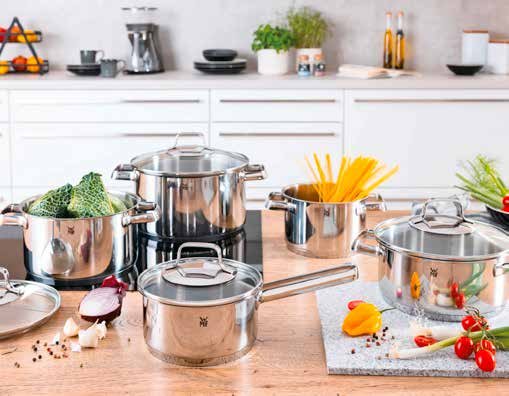 nehrđajući čelik 18/10, sastoji se od dva lonca Ø 16 i po jednog lonca Ø 20 cm i Ø 24 cm, te četiri staklena poklopca, s ručkama koje se vrlo sporo zagrijavaju, pogodno za sve vrste štednjaka i perilicu posuđa