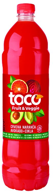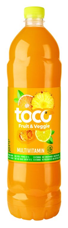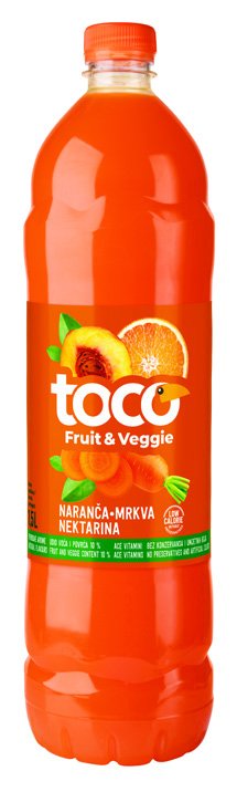 Sok multivitamin, naranča mrkva nektarina, crvena naranča avokado cikla*, jabuka rabarbara*, limun krastavac* Toco, 1,5 l u NTL trgovinama