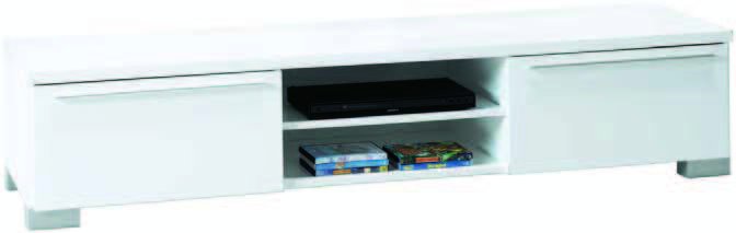 Kvalitetan TV-stalak s bijelom završnom obradom visokog sjaja. S 1 policom i 2 ladice.