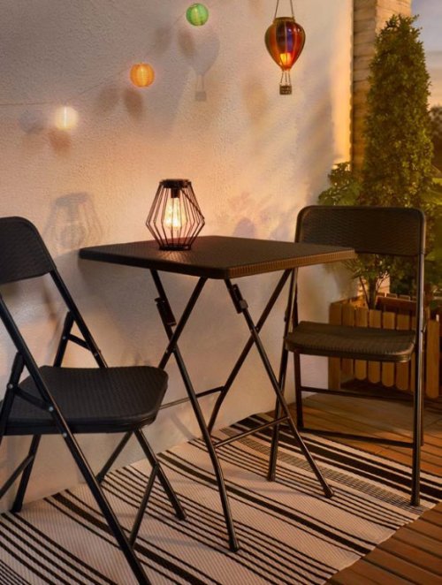 Balkonska garnitura od ratana sastoji se do stola: 61x61x74 cm i 2 stolice: 44x49x83 cm u Tedi trgovinama