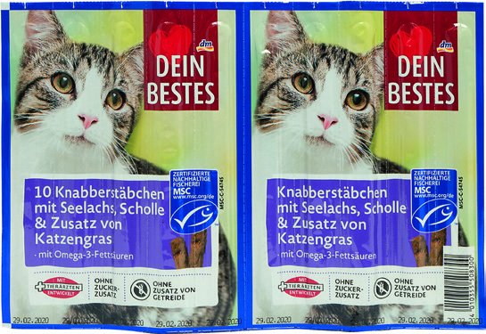 Dein Bestes štapići za mačke s lososom, listom i mačjom travom 10×5 g, 50 g može se kupiti u odabranim dm poslovnicama za 1,25 €. dm poslovnica na adresi Vukovarska 207 (17 km udaljeno) otvorena je danas od do