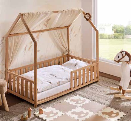 u obliku kuće, masivno drvo bukve, podnica od masivnog drva breze, maksimalna opteretivost do 30 kg, površina ležaja 70x140 cm, š/v/d: 75x135x145 cm. (87980021/01)
